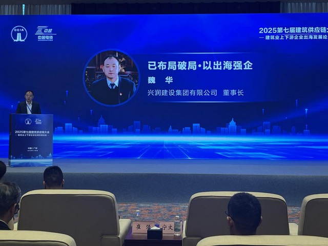 作为中国建筑业协会副会长单位,集团党委书记、董事长、总经理魏华受邀出席本次大会,并在 “建筑业上下游企业出海发展论坛” 作典型发言。魏总以 “以布局破局・以出海强企” 为核心主线,系统阐述了兴润集团 “国内筑根基、海外谋突破” 的双轮驱动供应链发展战略,并结合企业实践案例,详细分享了在供应链构建、产业链协同及海外市场拓展中的成果与经验。